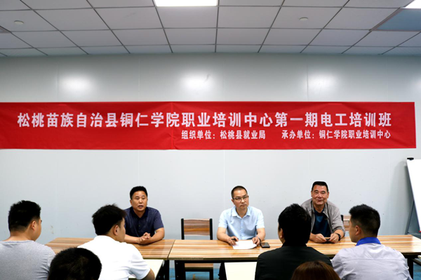 2022年6月10日,由松桃县就业局主办、铜仁学院职业培训中心承办的松桃县2022年职业技能培训(电工班)顺利开班。我院培训中心主任陈波、松桃县就业局相关负责人及全体参训学员出席开班典礼。