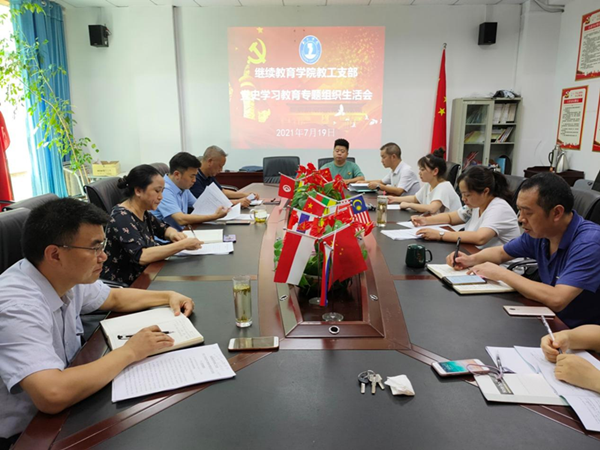 7月19日,铜仁学院继续教育学院教工支部在院会议室召开党史学习教育专题组织生活会,支部全体党员参加。会议由支部书记田洁主持。