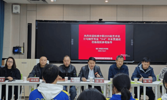 为深化中本衔接、拓宽专业视野、激发学习热情,10月21日,松桃苗族自治县中等职业学校副校长杨存生率40余名师生来我院开展研学交流。艺术学院副院长龙庆华教授主持活动,学院相关科室负责人及视觉传达设计专业教师代表参加。