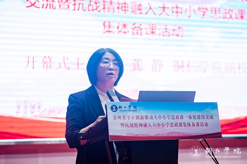 10月18日,贵州省守正创新推动大中小学思政课一体化建设交流暨抗战精神融入大中小学思政课教学集体备课活动在我校举办。省委教育工委副书记李军,我校党委副书记、校长石维,我校副校长龚静,铜仁市教育局党组书记、局长冉俊华等出席活动。贵阳信息科技学院校长唐建荣、苏州大学马克思主义学院原院长田芝健等来自省内外高校的70余名专家学者以及铜仁市大中小学思政课教师代表80余人参加活动。龚静主持活动开幕式。