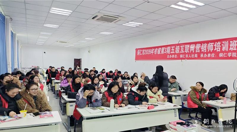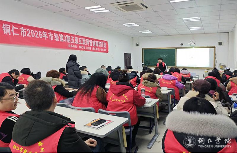 为深入落实“技能贵州”行动要求,助力铜仁市数字经济高质量发展,精准对接新业态技能人才需求,1月20日,由铜仁市人力资源和社会保障局主办、我校承办的铜仁市2026年第3期互联网营销师(五级)职业技能培训班正式开班。60名来自全市各地的待业青年、灵活就业者、企业职工、新业态转型人员等学员齐聚一堂,共同开启数字营销技能提升之旅。