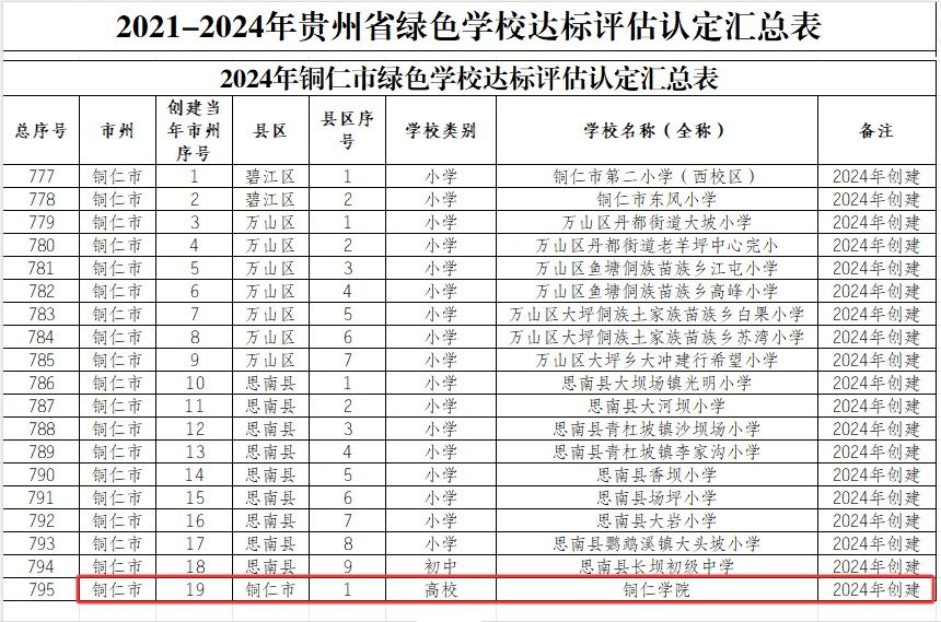 根据贵州省教育厅公布的2024年绿色学校名单,我校成功获评“贵州省绿色学校”荣誉称号。这是继2022年荣获“贵州省节水型高校”之后,学校在生态文明建设领域斩获的又一项重要省级荣誉,标志着我校绿色校园创建工作取得阶段性显著成效。