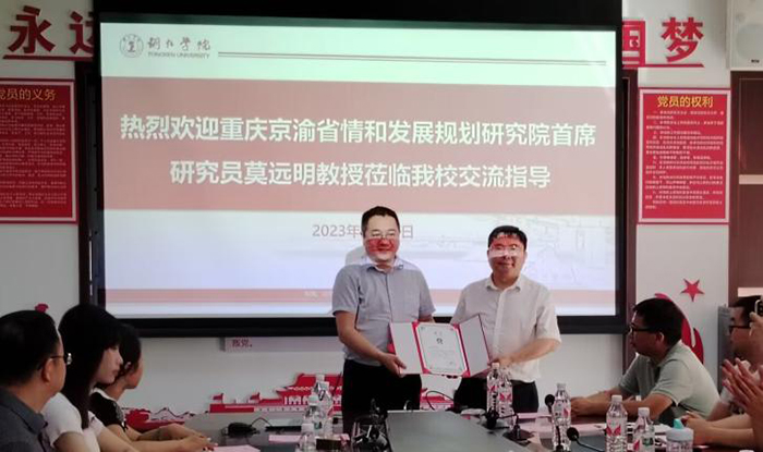 6月13日上午,我校特邀重庆工商大学成渝地区双城经济圈协同发展中心研究员、远明智库创办人、重庆京渝省情和发展规划研究院首席研究员莫远明在行政楼8222会议室作了主题为“专题研究、资政报告写作与高校智库建设”的学术报告。副校长杨建出席并为莫远明颁发客座教授聘书。科研处处长周刚及学校各人文社科类校级实体科研机构有关人员出席。科研处副处长陈俭主持会议。