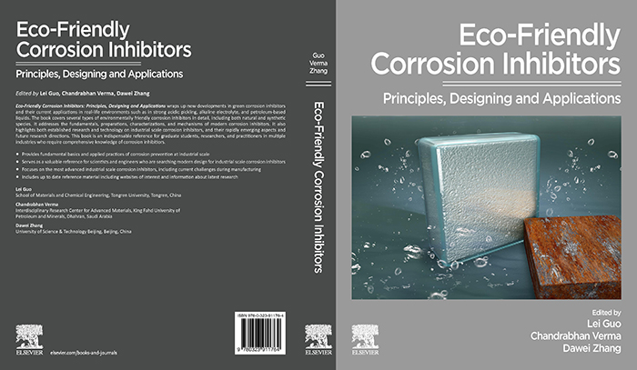 近日,由我校郭雷教授、法赫德国王石油矿产大学Chandrabhan Verma研究员、北京科技大学张达威教授共同主编的全英文著作Eco-Friendly Corrosion Inhibitors(《环境友好型缓蚀剂》,ISBN 9780323911764)由Elsevier出版社出版,全球发行。