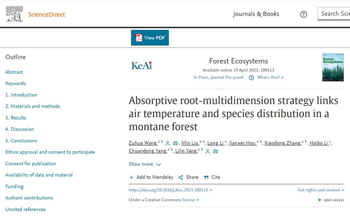 我校王祖华博士长期从事林学的研究,近日在林学领域取得了重要研究进展,相关成果“Absorptive root-multidimension strategy links air temperature and species distribution in a montane forest”发表在中国科学院1区期刊《Forest Ecosystems》(IF=4.274,https://doi.org/10.1016/j.fecs.2023.100113)上。
