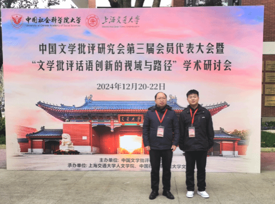 12月21至22日,由中国文学批评研究会主办,上海交通大学人文学院、中国社会科学院大学文学院承办的中国文学批评研究会第三届会员代表大会暨“文学批评话语创新的视域与路径”学术研讨会在上海交大人文学院举行。我校硕士生导师孙向阳教授与2023级马克思主义理论硕士研究生石天鹏参加了此次会议。