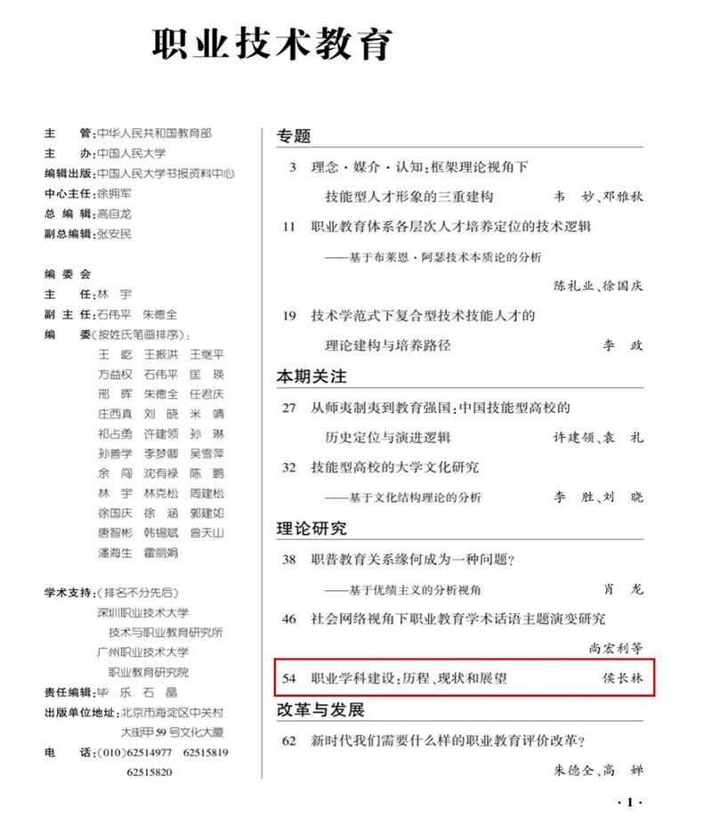 近日,我校侯长林教授撰写的论文《职业学科建设:历程、现状和展望》被中国人民大学复印资料《职业技术教育》2026年第2期全文转载。该论文原发表于《贵州师范大学学报(社会科学版)》2025年第4期,系国家社科基金项目“职业学科基本理论及其体系构建研究”(BJA220245)的阶段性成果。