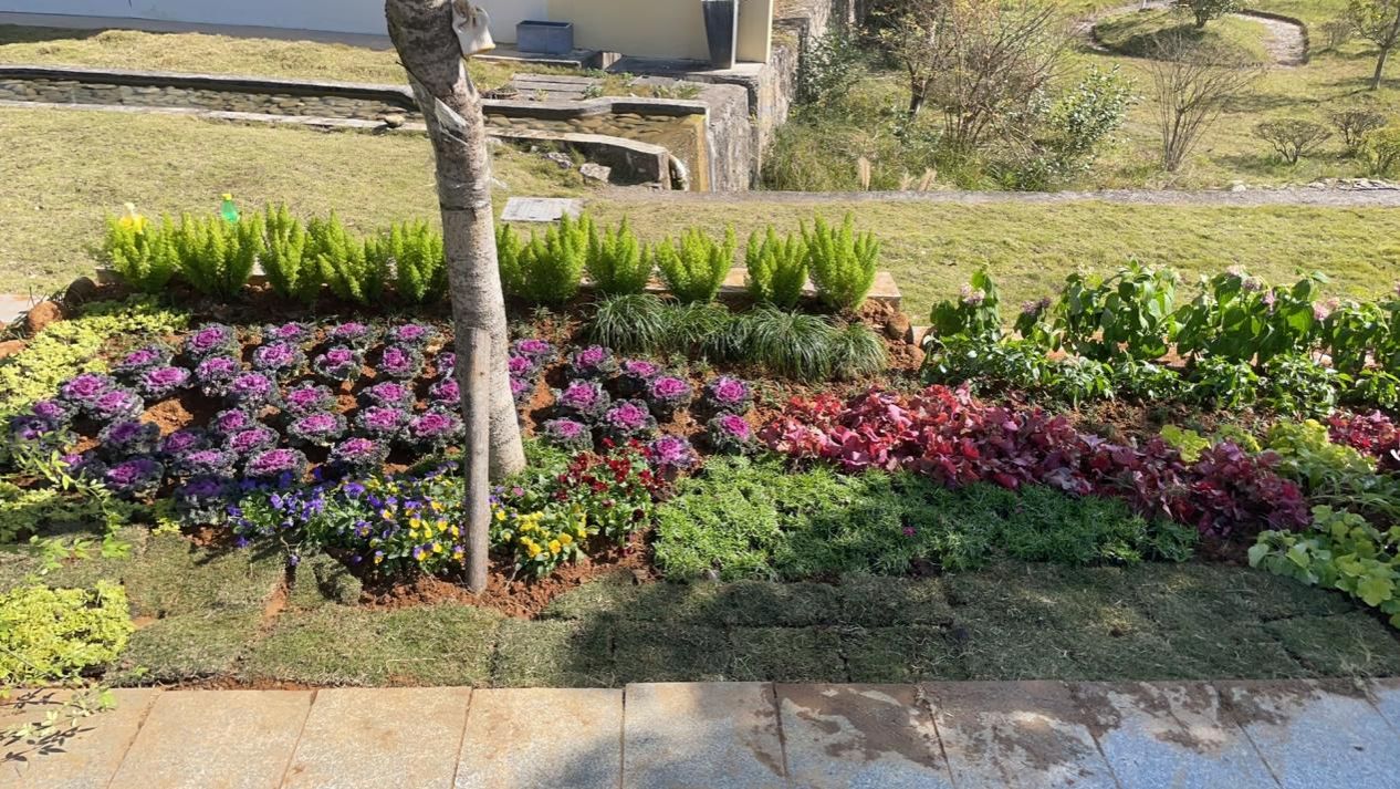 此次花境设计建造,是课程教学的一次创新探索。课程通过户外实地调研、设计方案、施工落地等环节,引导学生直面真实场地与植物特性,在设计图纸与建成场景之间构建实践桥梁,全方位提升学生的设计思维与实践能力。项目以校园主干道一侧绿带为基址,学生以小组形式协同合作,打造出以多年生宿根植物为主,搭配灌木、少量一二年生花卉及园林小品的景观群落,兼具专业高度与观赏价值。活动得到了农林工程与规划学院、后勤处、教务处及铜仁梵花商贸有限公司等单位的大力支持,为实践教学的顺利开展提供了坚实保障。