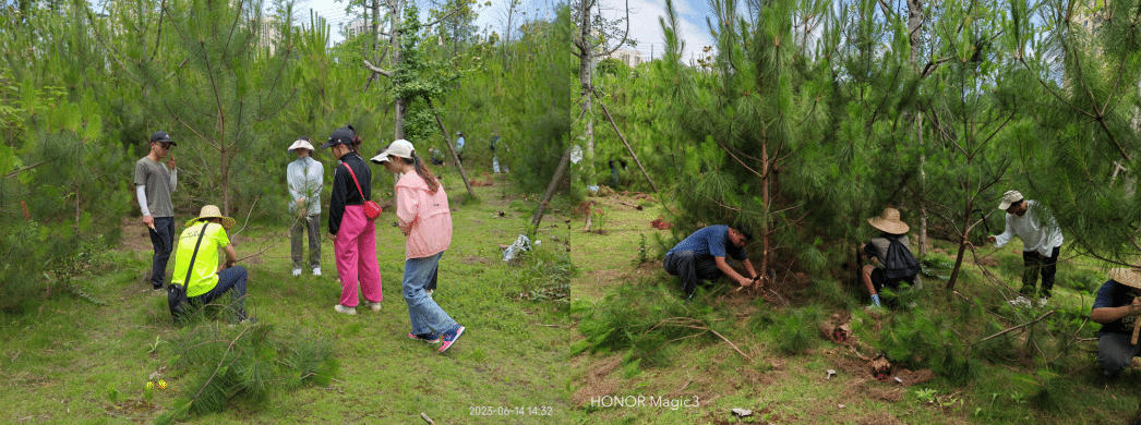 作为教学实践地的这片马尾松林是农林工程与规划学院2017级林学班的同学2018年春天同杨红老师一起亲手种下的,一棵棵马尾松从幼苗长成幼树历时五年,已经到了幼林修枝抚育阶段。作为林学专业的我们,守护好校园的每一片绿色,这是我们的责任与担当。