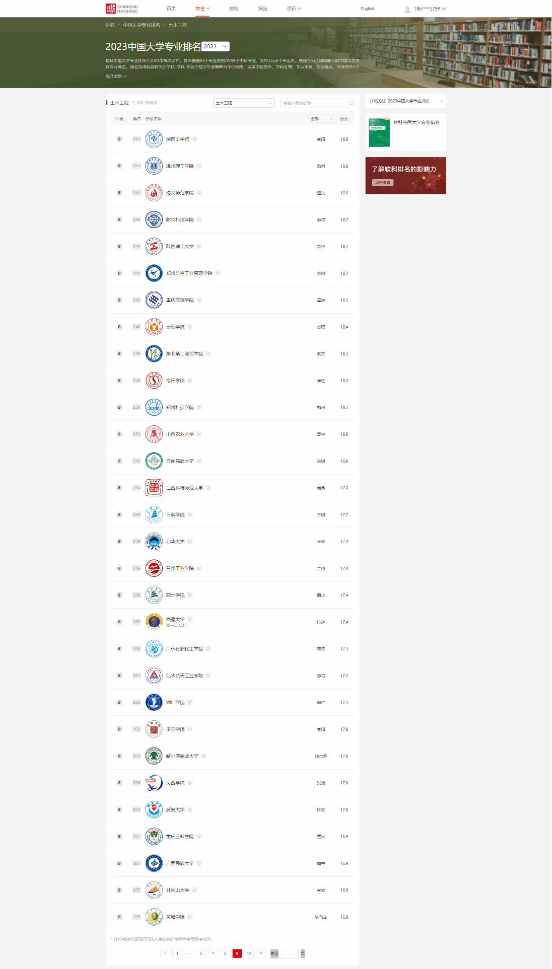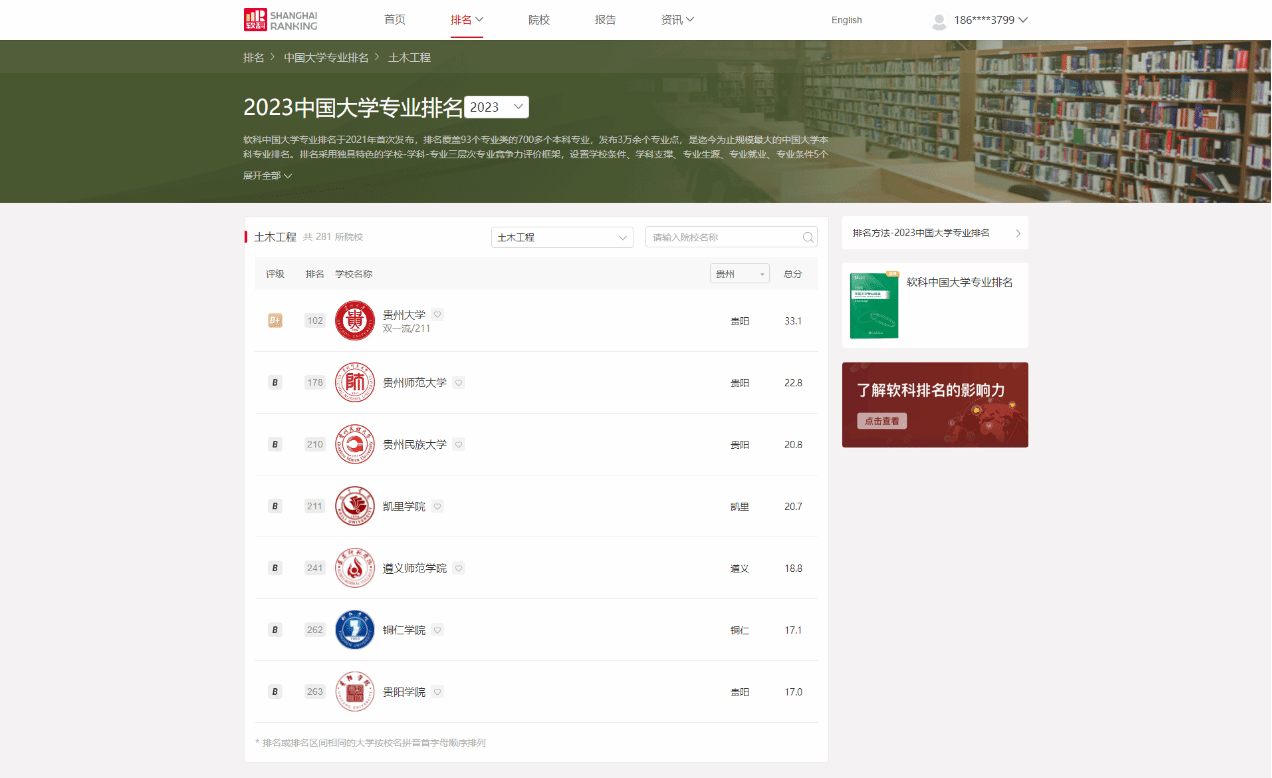 6月15日,高等教育专业评价机构—上海软科教育信息咨询有限公司发布2023年中国大学专业排名,我校土木工程专业在上榜的281所院校中排名262,得分17.1分,贵州省内第6,属B等层次,全国共有572所院校开设土木工程专业。
