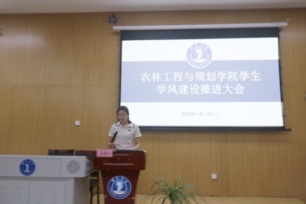 通过本次推进大会,真正树立学生对学风建设的认识,激发他们的学习热情和思想觉悟,学院将以学风建设为契机,着力解决我院在学风建设工作中存在的问题,积极营造“勤思好学树学风 实干笃行显担当”的育人环境。