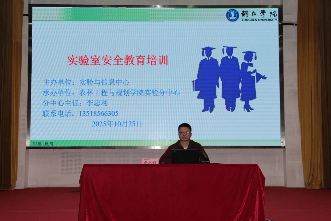 为进一步规范学校实验室管理,强化实验师生的安全意识,落实实验室安全责任,2025年10月25日上午,由实验与信息中心主办、我院承办的“实验室安全教育培训”讲座在铜仁学院梵净人文生态馆开展。近300名师生参加了本次实验室安全教育培训,现场发放了《铜仁学院实验室安全手册》。