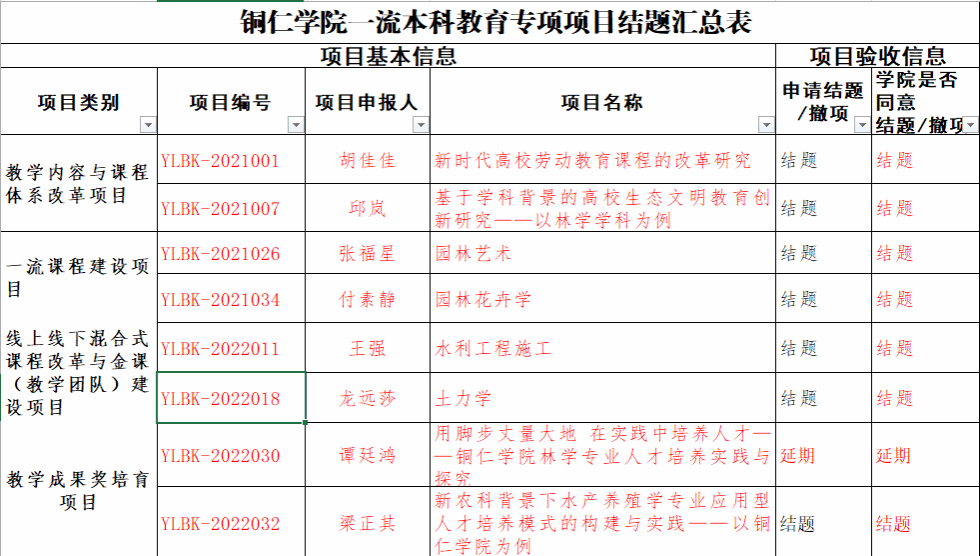 根据《关于开展铜仁学院一流本科教育专项项目结题工作的通知》要求,经教师本人申请、学院组织专家评审,现将评审结果进行公示。公示时间为3月27日-3月29日。