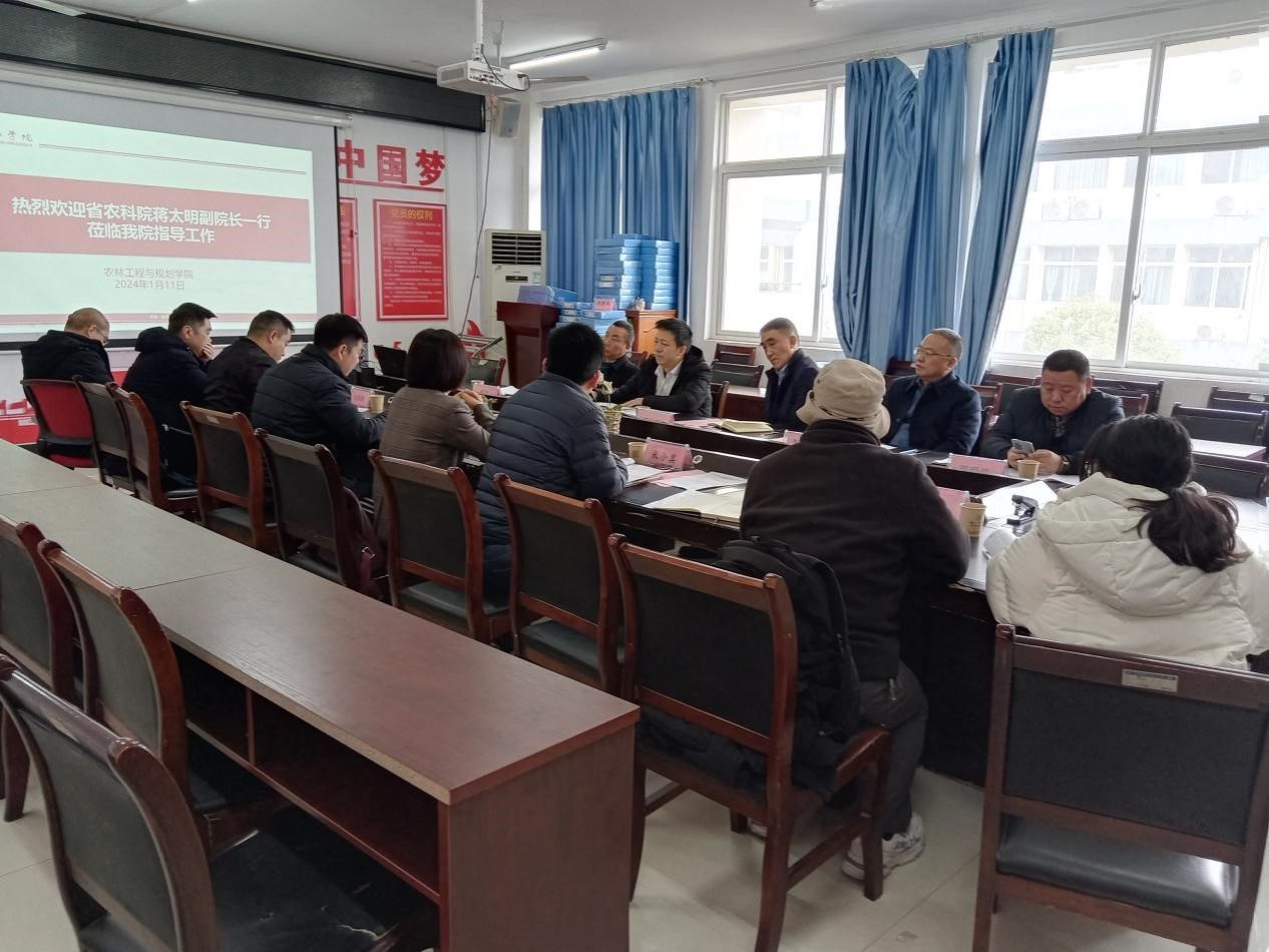 2024年1月11日上午,贵州省农业科学院党委委员、副院长蒋太明、成果转化处处长李大雄、旱粮所党委书记邵明波、科研管理处副处长杨文及铜仁市农业科学院院长邓川一行5人来我院进行交流指导。我校副校长罗静、农林工程与规划学院院长米小其、研究生院副院长梅杰、农林工程与规划学院副院长张俊波、农业硕士农艺与种业领域负责人高健强、硕士生导师代表王锯钢、谭智勇,研究生院培养办公室负责人包润泽,农林工程与规划学院研究生管理负责人莫忠妹老师参会,会议由米小其主持。