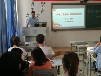 蒋旭军副书记主要围绕中国共产党发展脉络及学习党史重要意义的内容,引用红色教育资源,周逸群等烈士的革命精神;结合自己对党史学习教育的体会及工作经验深入讲解,为同志们上一堂传承红色精神,筑牢党员意识生动的专题党课。