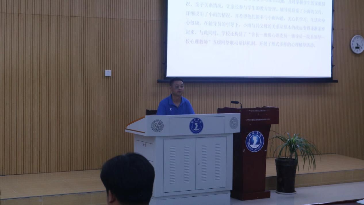 蒋旭军副书记从大学生心理健康典型案例入手,分析了大学生心理健康存在的问题和提出了解决方案。他围绕树立良好的健康意识、培养健康生活方式、培养积极应对压力的方法、建立自我放松意识、培养正念意识六个方面,结合案例进行了深入细致的讲解,强调了大学生心理健康教育工作的重要性。