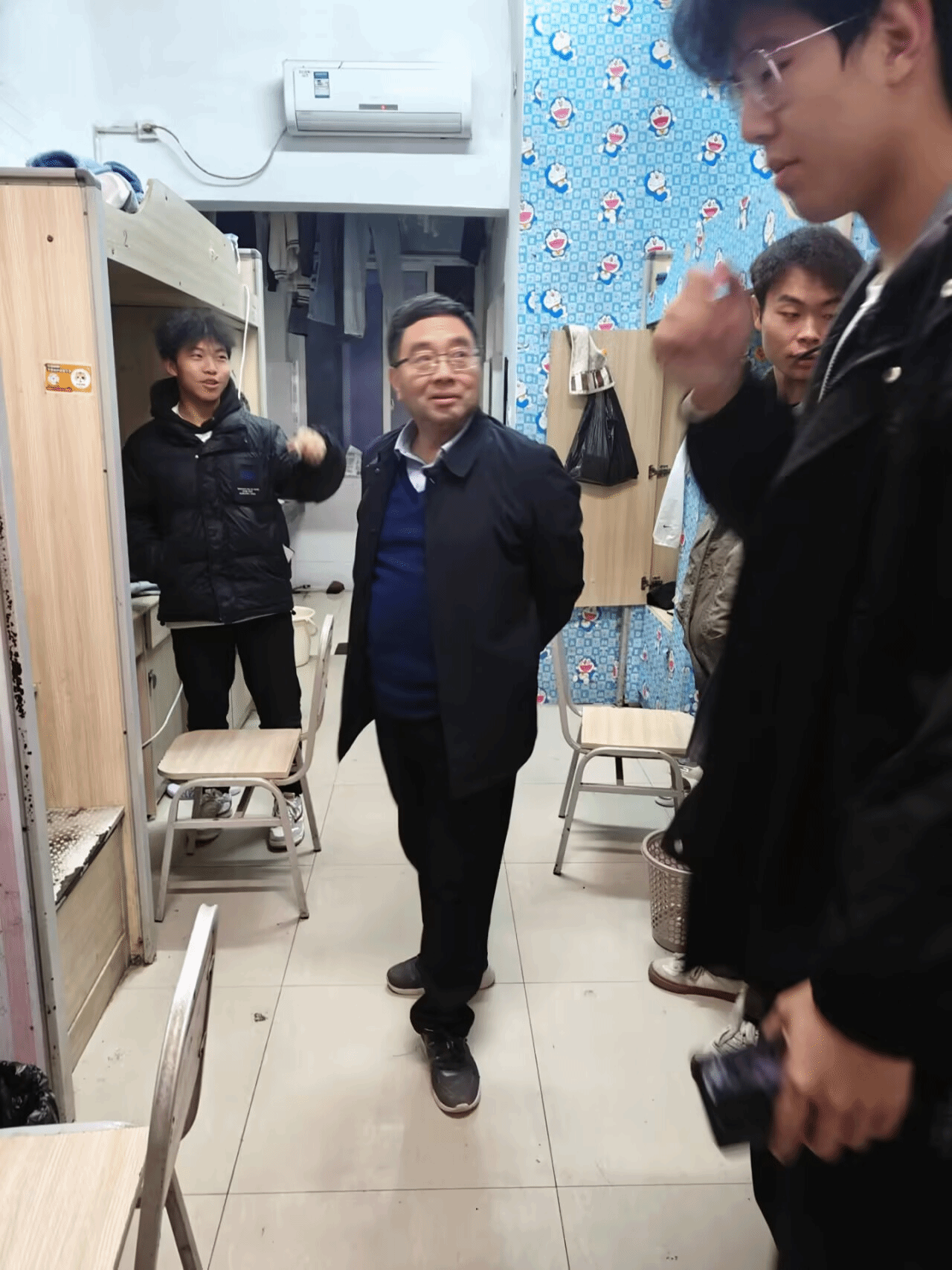 为深入了解学生冬季过冬情况,11月27日晚上21:00,我院党委书记李建新、院长米小其、党委副书记蒋旭军、副院长赵成刚、副院长张俊波分别带领全体辅导员(班主任)一行深入学生寝室开展“情谊暖寒冬,冬季送温暖”走访慰问活动。在走访慰问中,主要详细了解学生学习、生活、寒假返乡等情况,对学生存在困难及时给予关心和解决,嘱咐大家要提升安全意识,重视个人防护,加强体育锻炼,保持良好的生活习惯,以饱满的热情迎接期末考试,表达了学院全体教师对学生的亲切关怀。