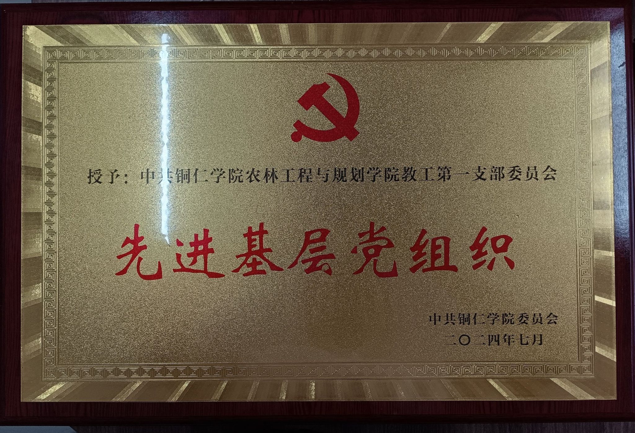 中共铜仁学院农林工程与规划学院教工第一支部委员会被授予铜仁学院2024年“先进基层党组织”