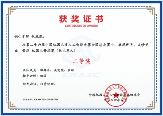 第二十六届中国机器人及人工智能大赛国赛二等奖