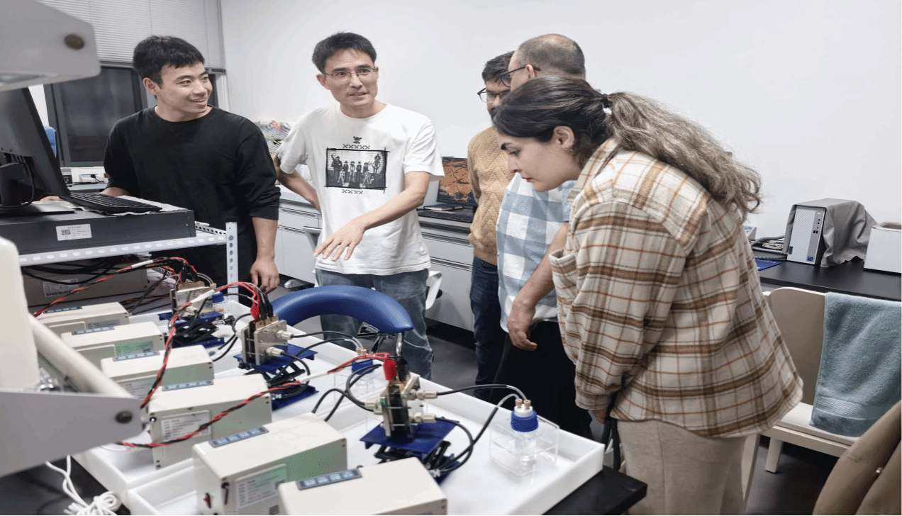 当晚19时30分,活动正式拉开帷幕。我院王凯博士首先代表学院向远道而来的外籍专家致以热烈欢迎,并简要介绍了我院在材料科学、化学工程等领域的学科特色及科研进展情况。随后,三位外籍专家分别围绕新能源材料、绿色化工与环境催化等国际前沿研究方向进行了专题报告,内容深入浅出,兼具学术深度与实践价值,引发了在场师生的广泛关注。在互动交流环节,师生积极提问,围绕学术研究、国际视野拓展以及跨文化合作等议题与外籍专家展开了深入探讨。现场气氛热烈,交流富有成效,充分展现了我院学生扎实的专业素养与开阔的国际化视野。随后,在我院教师陪同下,外籍专家参观了学科楼科研实验室。各课题组相关老师详细介绍了当前研究项目、实验设备配置及阶段性研究成果。外籍专家对我院在新型功能材料、绿色化工与先进医药等领域的研究工作给予高度评价,并就未来可能的合作方向提出了建设性意见。
