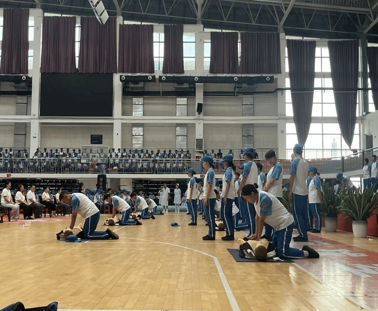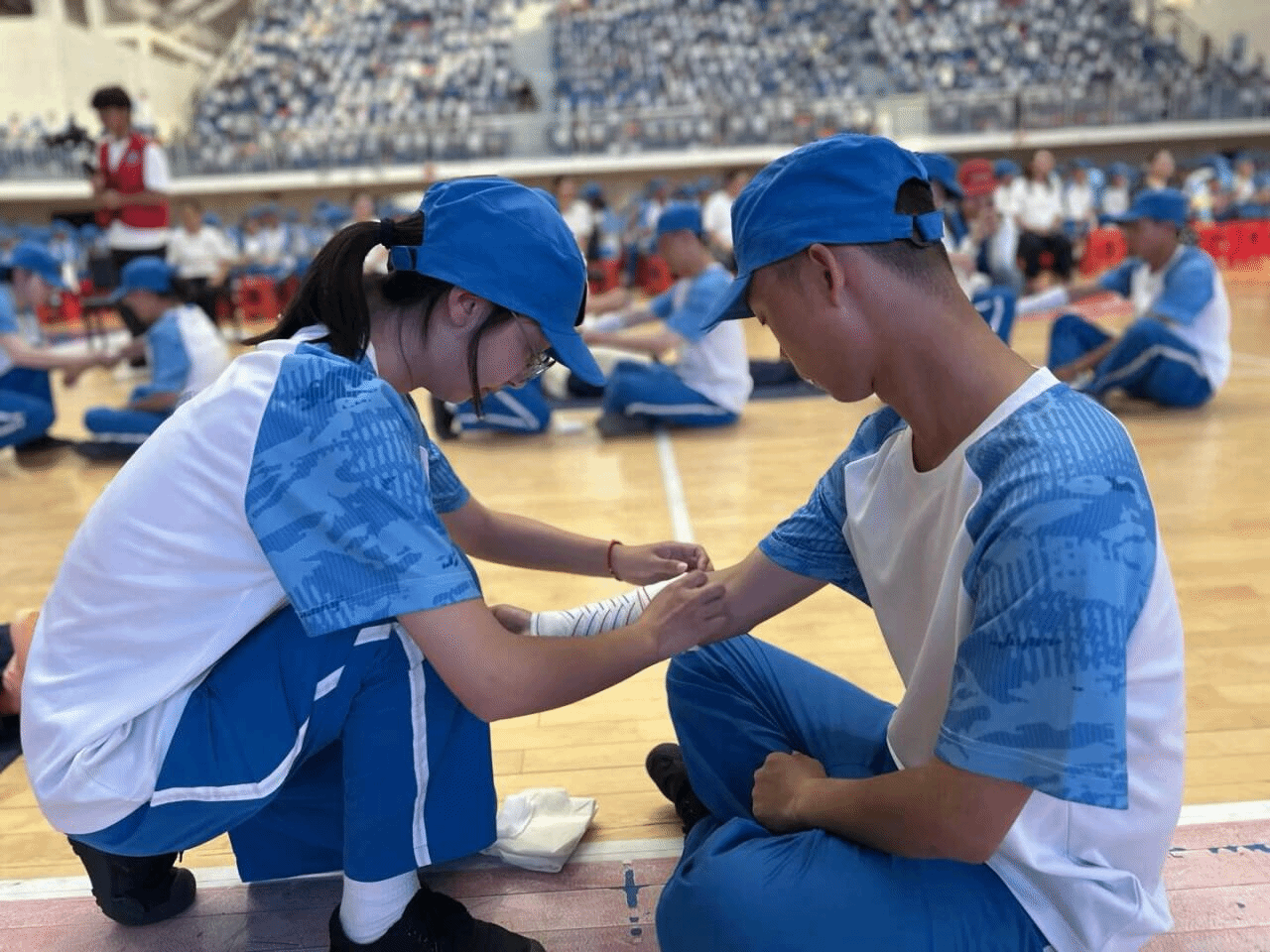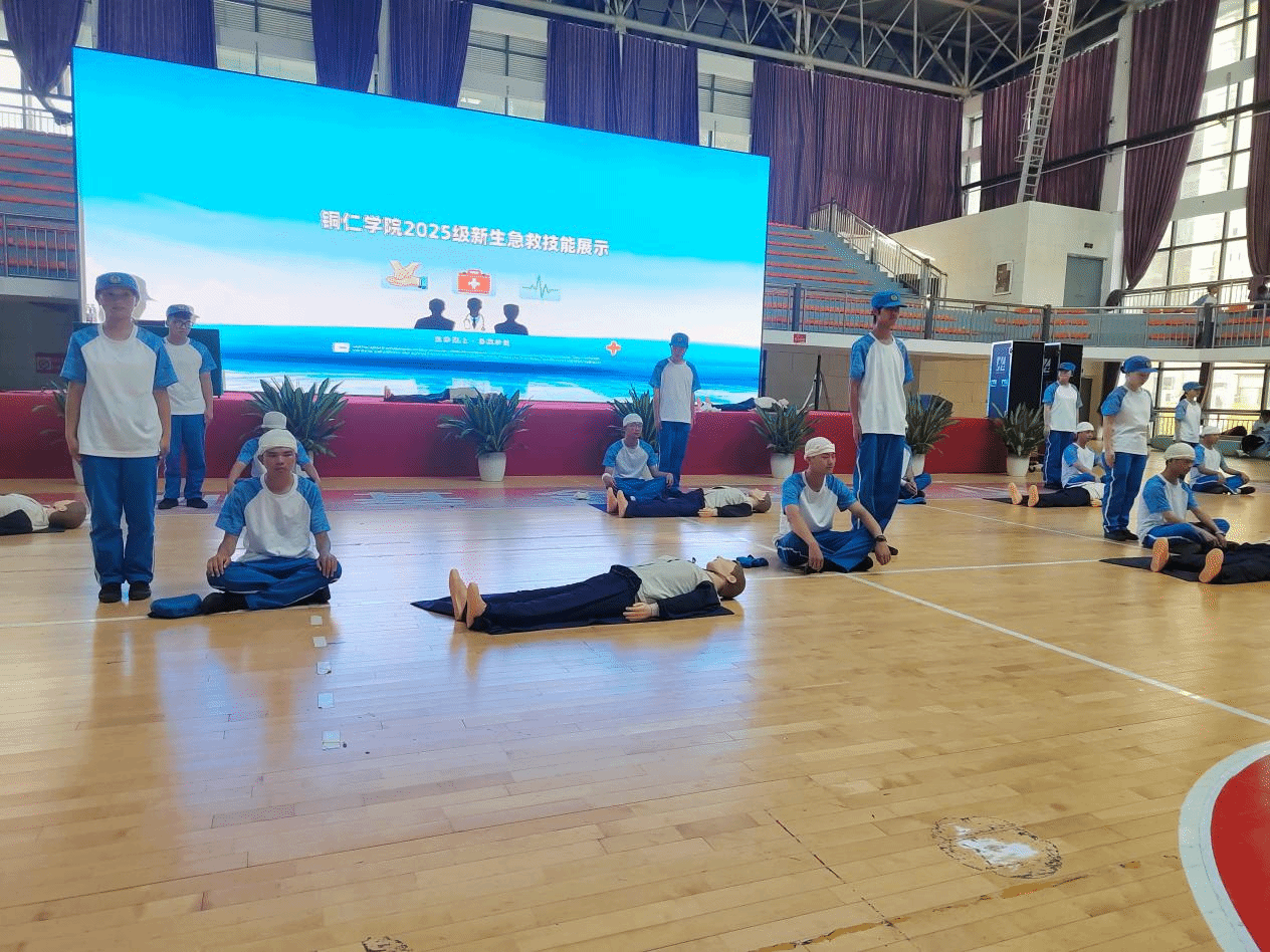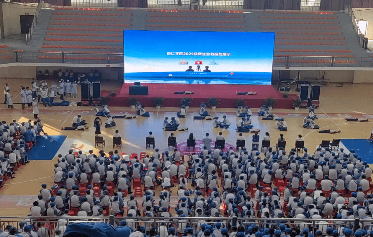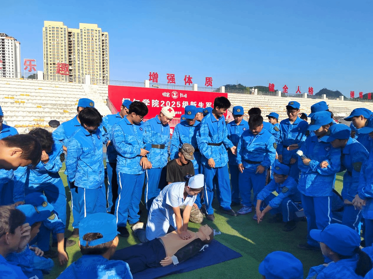 为增强2025级新生安全防范意识与自救互救能力,2025年9月16日至17日,铜仁学院应急救护社全体成员(护理专业学生)在大健康学院护理老师的指导下,分别在足球场和体育馆圆满完成了2200余名新生军训应急救护培训任务及技能展示。