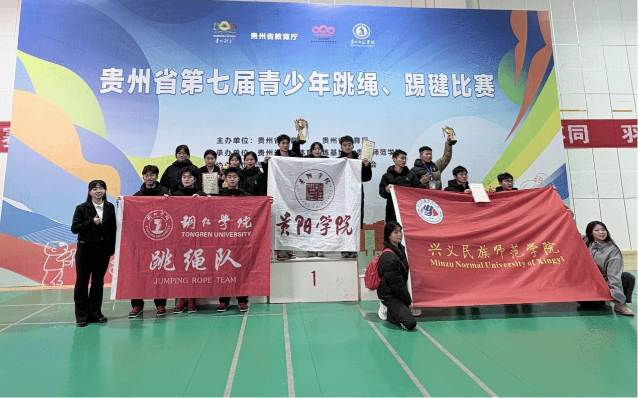 11月30日,由贵州省体育局、省教育厅联合主办的贵州省第七届青少年跳绳、踢毽比赛圆满落幕。我校跳绳队在马宁老师的带领下,以顽强拼搏的斗志、默契无间的协作,最终荣膺大学组团体二等奖,并斩获集体项目3座奖杯,个人项目多点开花收获多项佳绩,再度为学校体育事业发展添上浓墨重彩的一笔。