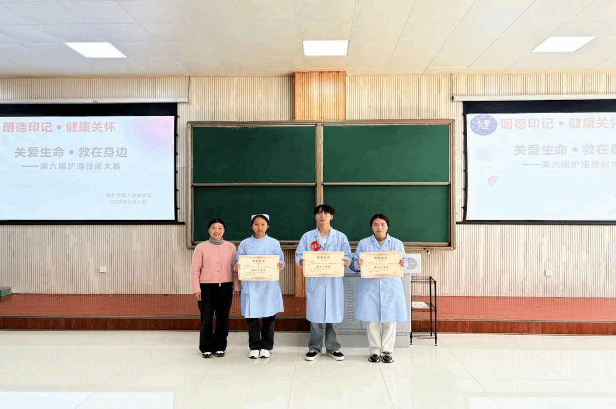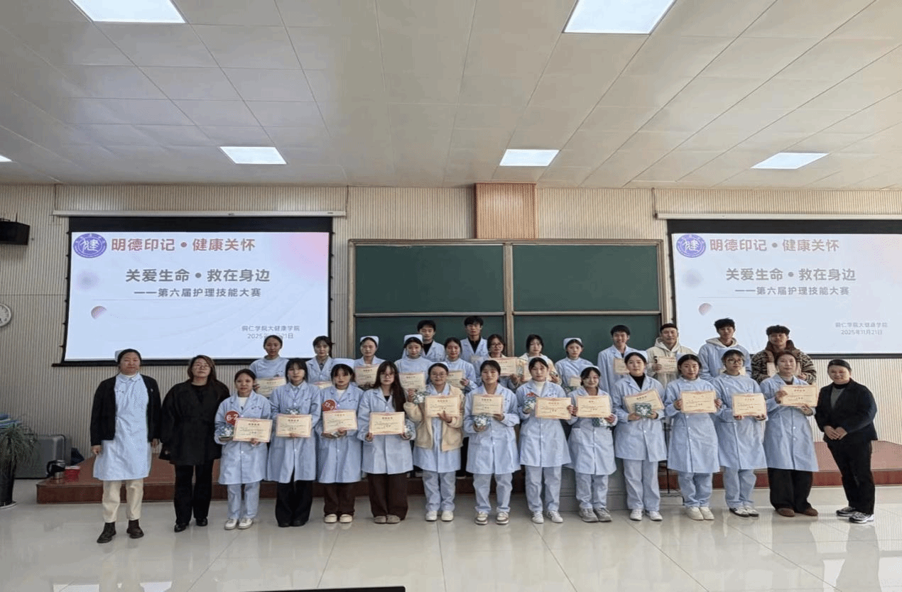 2025年11月21日,大健康学院于博思楼隆重举办第六届护理操作技能大赛。本次比赛旨在全面检验与提升护理学子的专业技能、团队协作与人文素养,为培养新时代高素质应用型护理人才搭建重要平台。