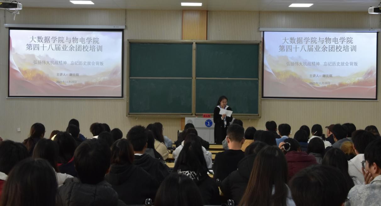 为引导青年学子铭记历史、缅怀先烈,传承和弘扬伟大抗战精神,大数据学院于11月29日下午4点在博思楼205开展“弘扬伟大抗战精神,忘记历史就会背叛”为主题的业余团课活动,全体团员青年齐聚一堂,共同接受精神洗礼,汲取奋进力量。