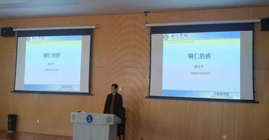 为深化数学文化育人内涵,搭建地方特色与学科知识交融的桥梁,2026年3月12日,铜仁学院博思楼105教室,一场别开生面的《铜仁的桥》专题讲座在此举行。本次讲座由颜宝平教授主讲,通过直观的视觉呈现和深入的历史解读,带领同学们认识欧拉、认识中国邮路问题。现场学术氛围浓厚,为数学文化节注入了浓郁的地方人文与数学智慧交融的独特魅力。