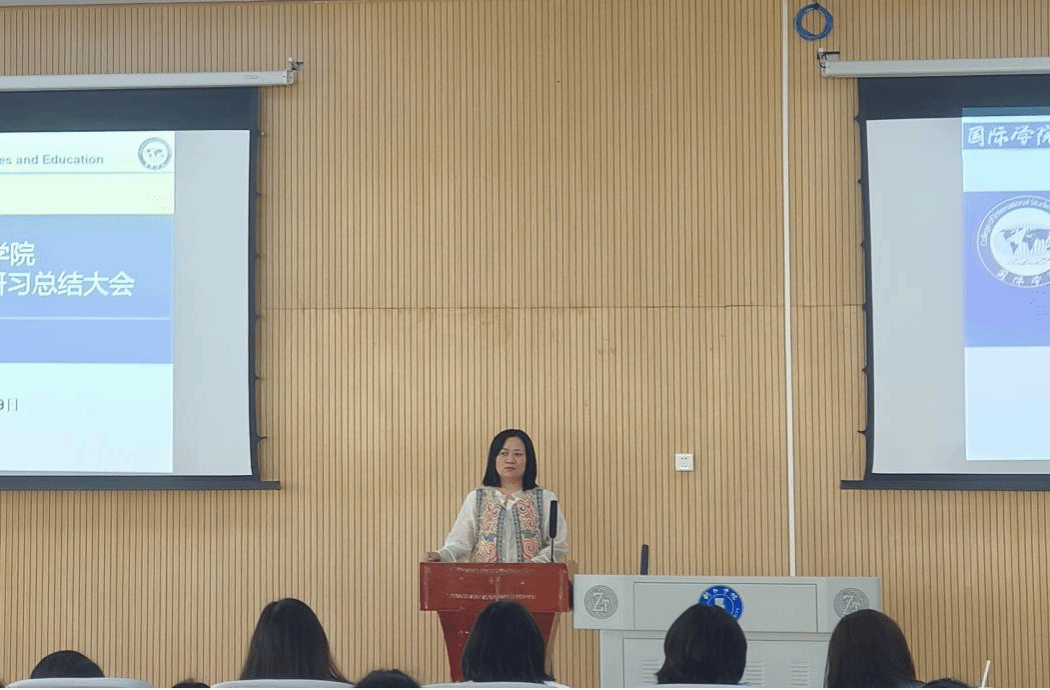 最后,李谦院长总结讲话。她对本次实习、研习工作的圆满完成表示祝贺,对全体指导老师的悉心指导与辛勤付出表示感谢。她强调,实习研习是专业人才培养的重要环节,是连接校园与社会的关键桥梁,希望同学们在总结反思时不必求大求全,可聚焦某一具体方面深入复盘,找准自身短板与提升路径,把实践中的收获转化为前行动力,坚定理想、锤炼本领,以更加饱满的姿态迎接未来挑战,成长为符合社会需求的高素质外语人才。