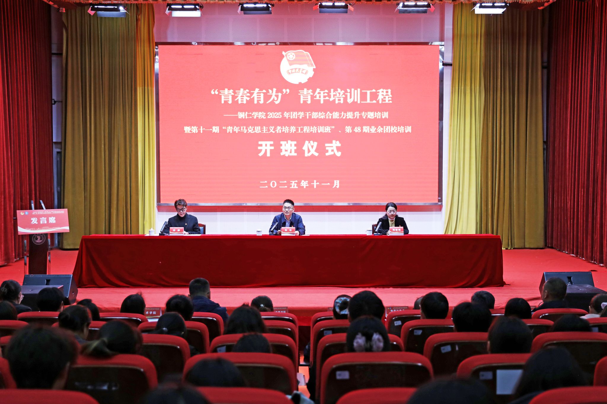 11月10日,我校在梵净山人文生态馆举行“青春有为”青年培训工程——2025年团学干部综合能力提升专题培训暨第十一期“青年马克思主义者培养工程”、第48期业余团校开班仪式。校党委副书记朱钰,党委常委、党委组织部部长周曾艳出席仪式。校团委副书记田淼主持开班仪式。各学院分管学生工作负责同志、团委负责人及全体参训学员近400人参加活动。