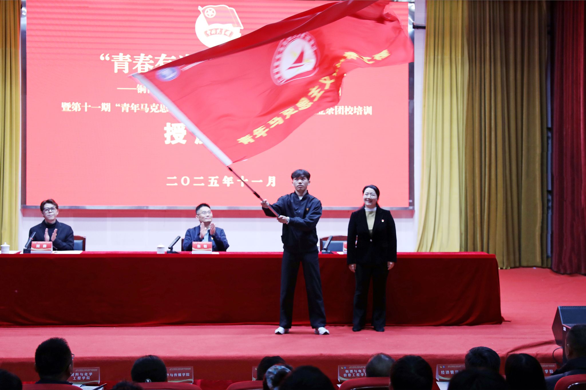 仪式上,周曾艳为第十一期“青马工程”和第48期业余团校授旗,经济管理学院2025级地理科学专业杨星同学代表新班接旗。旗帜传递着学校的信任与期望,象征着责任与使命的传承。
