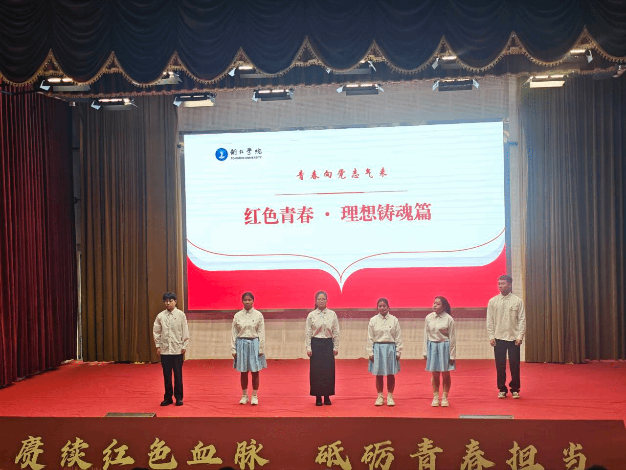 成果展示环节分为五个篇章,全面呈现了学校第二课堂实践育人成果。在“红色青春·理想铸魂”篇章,微团课《一封家书》通过情景再现方式,展现了青年学子的思想升华与使命担当;“紫色青春·创新创业”篇章中,挑战杯国赛三等奖获奖项目《铝程新源——户外电源的铝电革命》团队代表朱红颖同学分享了将爱国热情转化为科技报国的实际行动;“绿色青春·志愿同行”篇章邀请优秀志愿者周敏同学讲述了支教、助老等服务中的感人故事;“蓝色青春·社会实践”篇章展示了《互联网+云端助农》品牌项目,体现学子将专业知识转化为服务社会的实践能力;“橙色青春·美育浸润”篇章中,大学生艺术团的啦啦操表演以艺术形式传承“一二·九”运动精神。
