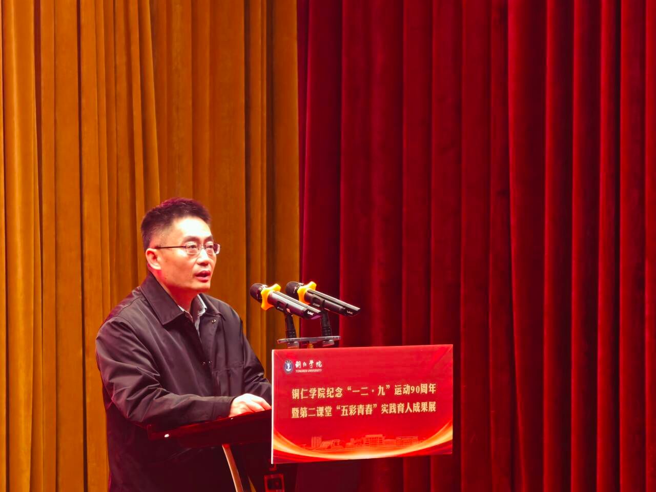 赓续红色血脉,砥砺青春担当。12月11日,我校举办纪念“一二·九”运动90周年暨第二课堂“五彩青春”实践育人成果展活动。校党委副书记朱钰,党委常委、组织部部长周曾艳,教务处处长冷森林以及相关职能部门负责人、各学院党委书记、分管学生工作领导及学生干部代表参加活动。