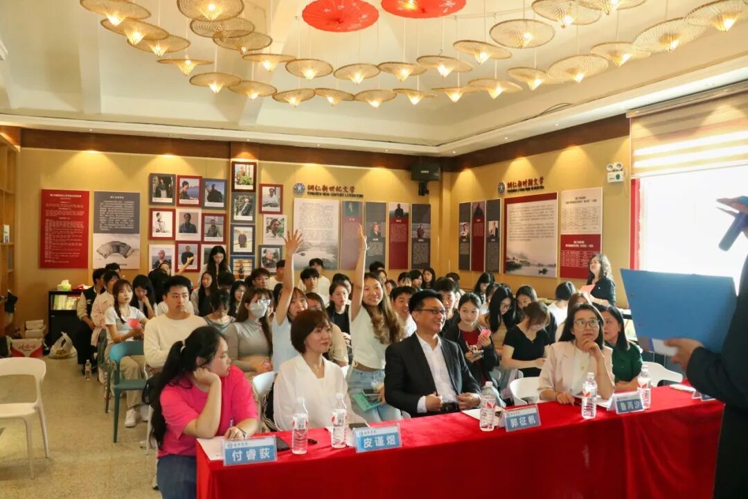 为营造浓厚的校园文化氛围,引导学生在阅读中汲取智慧、滋养心灵,4月21日,我校国际学院于明德楼举办了“书香致远,墨韵润心——共赴知识的盛宴”主题读书分享会。国际学院党委副书记鲁芮汐,图书馆副馆长江腾,文学与传媒学院秘书专业教研室主任、中国红楼梦学会理事郭征帆,中国作协会员龙凤碧,国际学院党政办主任皮谨煜,科长李梅,学生支部书记团总支负责人罗雪,学生科负责人付睿获出席本次活动,全校70余名学生参与活动。