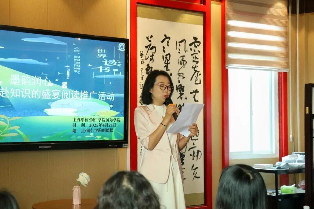 活动最后,全体同学齐声诵读《如果信仰有颜色》和《你是人间的四月天》,用朗朗书声传递对知识的热爱。铜仁学院国际学院科长、本次活动负责人李梅在总结活动时,肯定了师生的精彩表现,并鼓励大家将阅读融入日常生活。她表示,此次阅读推广活动旨在激发同学们的阅读兴趣,营造良好的阅读氛围,引导大家养成阅读习惯,在丰富知识储备、提升文化素养的过程中,不断开阔视野、陶冶情操。通过这样的方式,促进知识传播与文化传承,为社会文化发展注入活力。她希望同学们多读书、读好书,成为“胸藏文墨怀若谷,腹有诗书气自华”的时代青年。