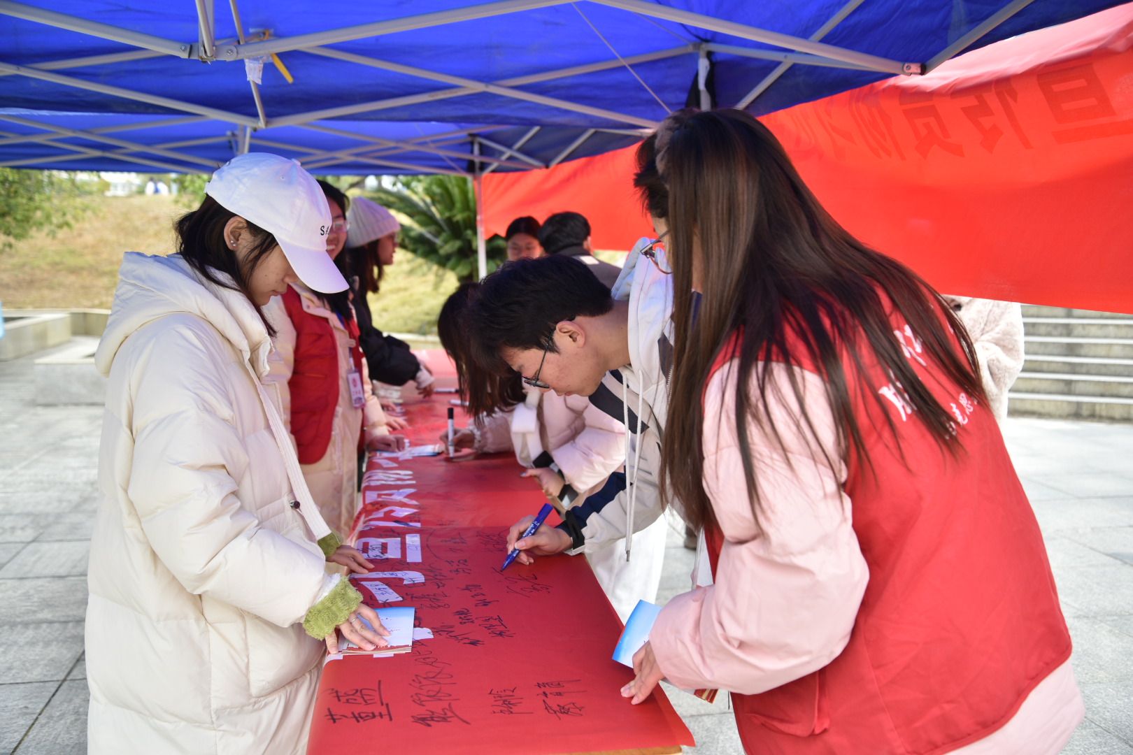 活动现场,工作人员精心布置宣传展区。志愿者们化身“宪法宣传员”,向来往师生发放宪法知识手册,并结合案例讲解宪法在日常生活中的应用场景,细致解答大家关于法律维权、权利保障等方面的疑问。通过志愿者们的宣传,不少师生在主题横幅上郑重签名,表达尊法、学法、守法、用法的坚定信念。宪法作为国家的根本大法,是治国安邦的总章程,是保障公民权利的根本遵循,更是凝聚民族力量、推动国家发展的法治根基。当代师生作为新时代的建设者和接班人,学习宪法、尊崇宪法、践行宪法是义不容辞的责任与使命,然后更应积极投身社会主义法治建设,为推进依法治国贡献力量。