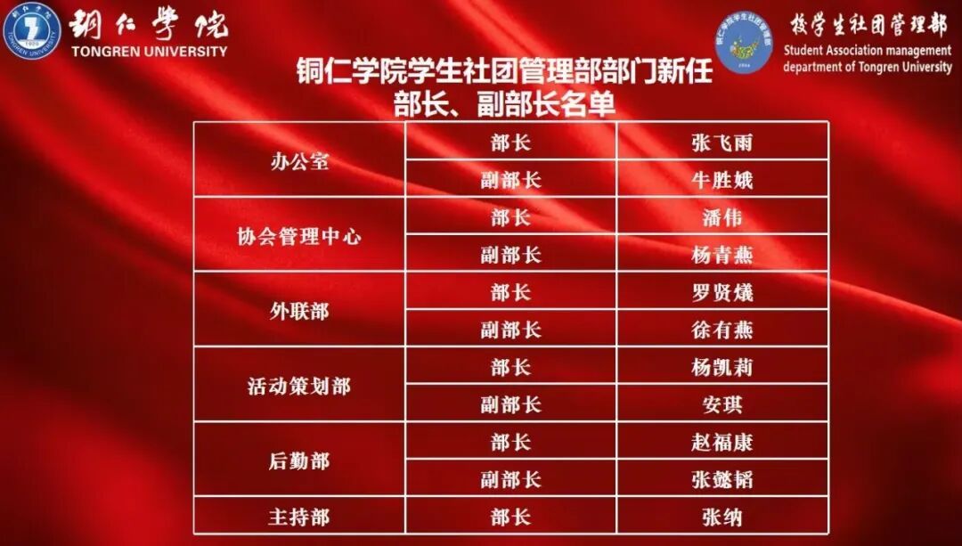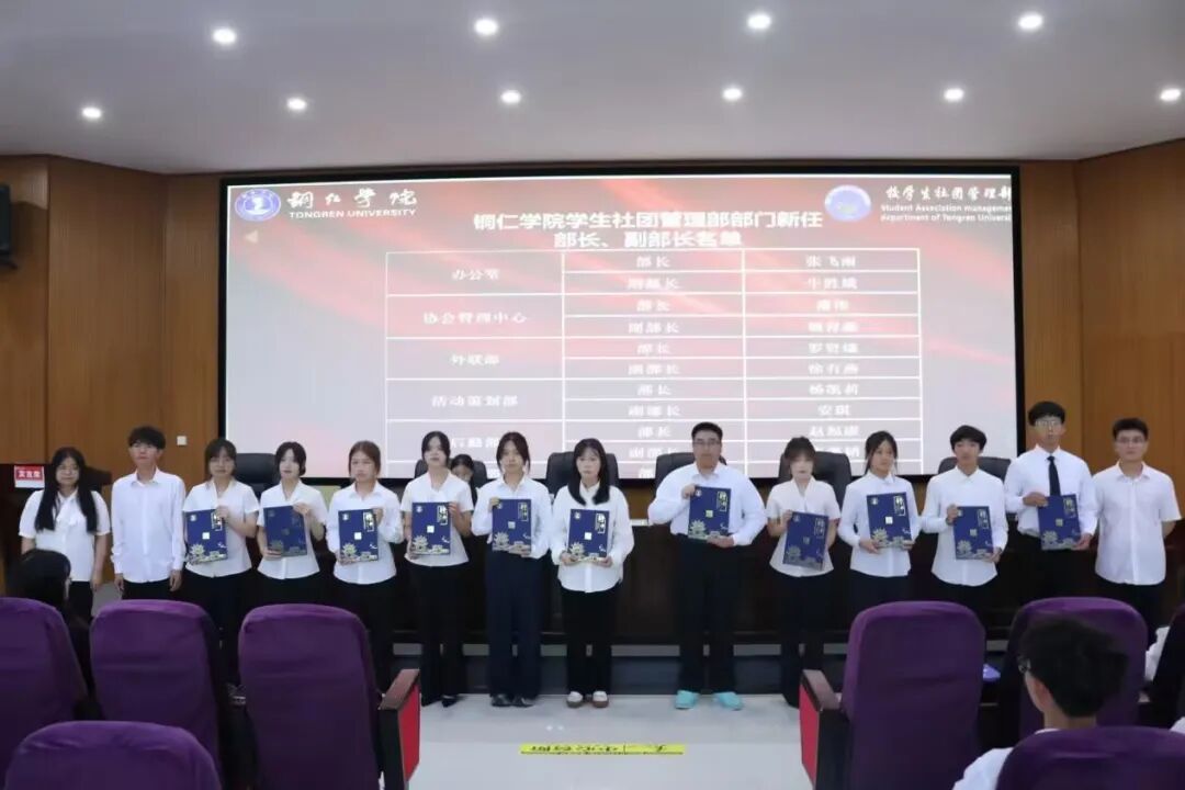 为了全面总结过往工作成果,科学规划未来发展蓝图,进一步加强组织建设,提升团队凝聚力与战斗力,6月13日,铜仁学院学生社团管理部换届聘任大会在博思楼101教室召开,参加此次会议的有铜仁学院学生社团管理部指导老师徐秋逸、铜仁学院学生社团管理部成员、各协会会长。会议由韩萍主持。