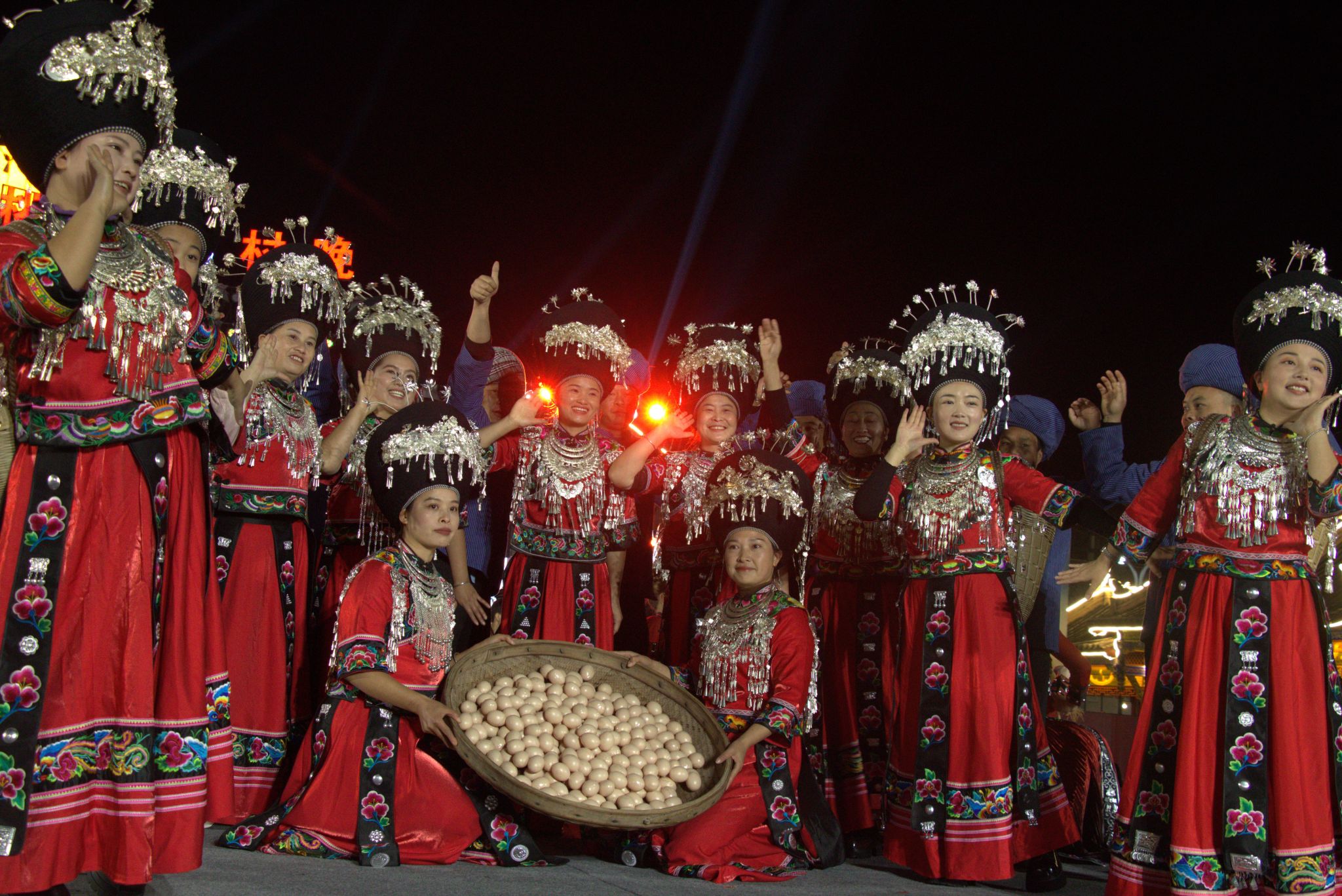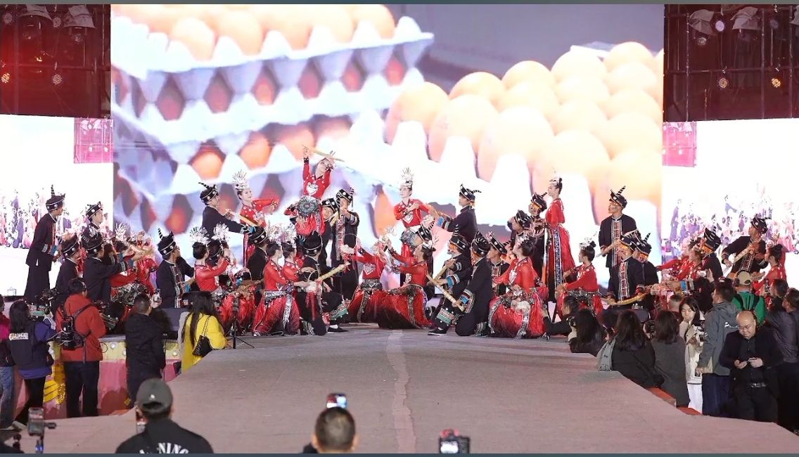 苗族情景舞蹈《太阳出来》以欢畅淋漓的舞步,描绘出一幅在党的政策光辉照耀下,苗乡大地欣欣向荣的崭新图景。舞蹈生动展现了农业现代化与乡村振兴比翼齐飞的景象,其中,蓬勃发展的绿壳鸡蛋产业作为绿色发展、产业链延伸的缩影,被艺术化地呈现在舞台之上。节目通过优美的肢体语言与激昂的音乐韵律,深刻诠释了干群同心、共创美好生活的主题,舞出了产业兴旺、生态宜居的幸福新苗乡,表达了对更加灿烂明天的共同憧憬。