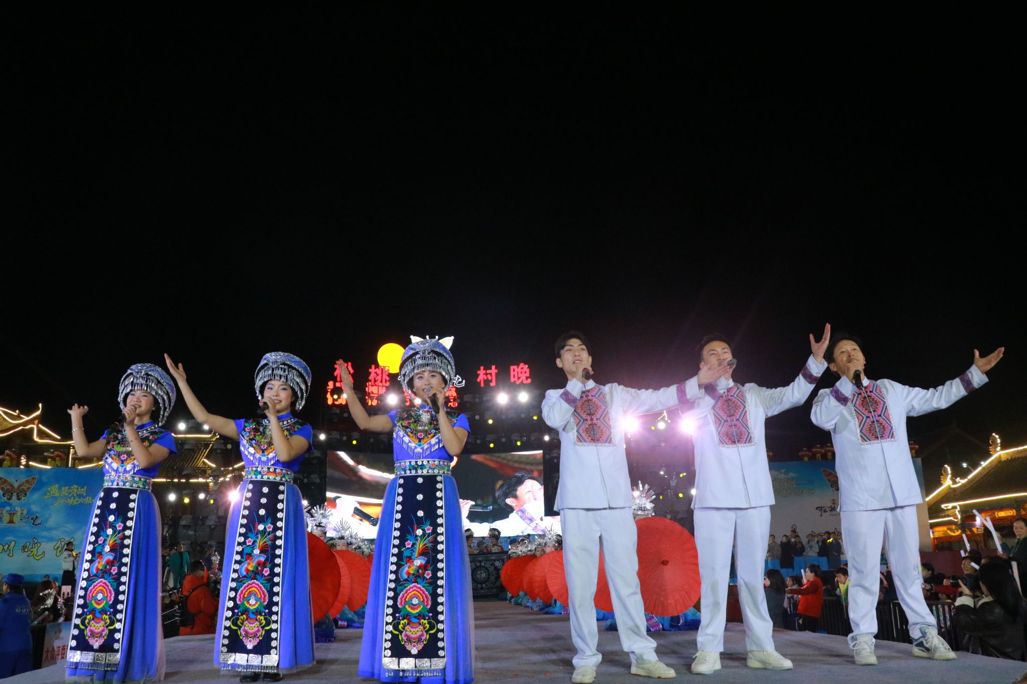 本次活动是校地合作、文化互融的生动实践。我校“明德印记·青春向党”助力乡村振兴文化艺术服务团由校团委、艺术学院、教育学院、大健康学院联合组建。服务团不仅承担了演出任务,更深度参与创作与编导。田淼担任晚会节目导演,并倾情创作了展现苗乡新貌的原创歌曲《苗乡盘信好风光》及情景舞蹈《太阳出来》,将高校的智力资源与地方的文化底蕴紧密结合。