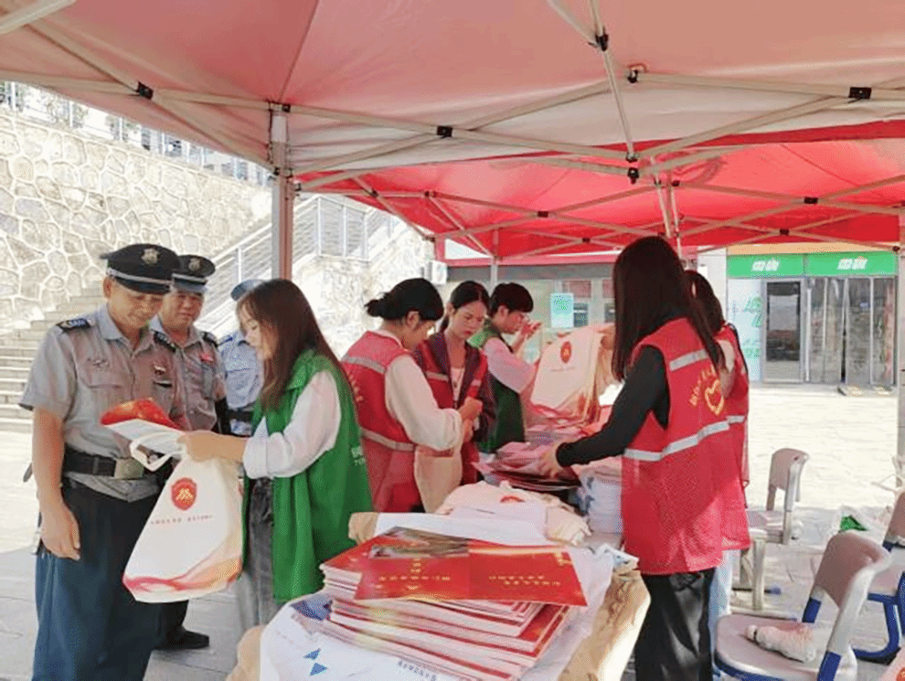 在服务过程中,她始终冲锋在前、认真履职。在铜仁市见义勇为工作推进会与“五进活动”中,她积极协助会场布置、开展普法宣传,向群众普及见义勇为精神与相关法规,用青春力量弘扬社会正气;在禁毒防艾宣传、农民丰收节等基层服务中,她深入乡村田间、社区街巷,踏实开展劳作帮扶、政策宣讲与秩序维护,用实干担当为基层发展注入青春动能;在植树节、世界水日、端午节、文明引导等常态化服务中,她持之以恒、默默付出,用点滴行动诠释奉献内涵,让志愿精神融入校园与社会的每个角落。