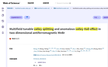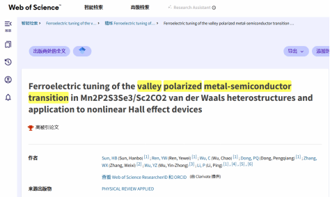 《Physical Review B》是凝聚态物理领域国际影响力最高、引用量最大的旗舰期刊之一,《Physical Review Applied》则是应用物理与器件物理领域的重要顶级期刊。两项成果均入选 Web of Science“高被引论文”,反映出研究工作的国际关注度和学科影响力。