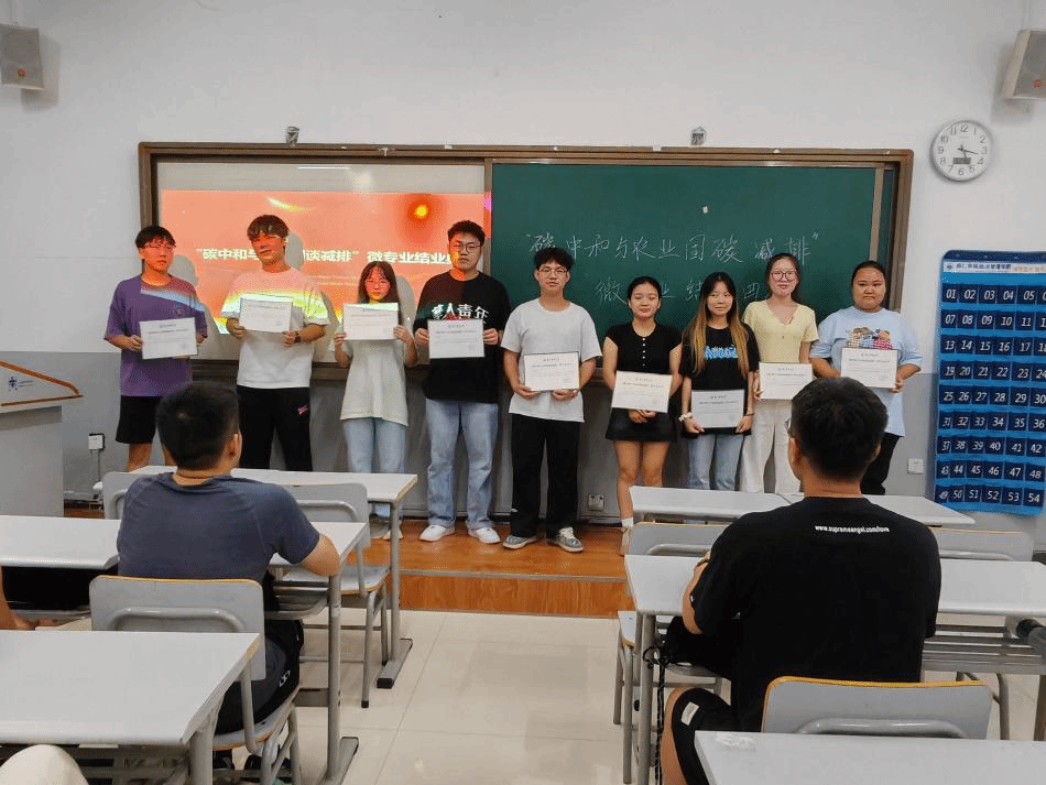 “碳中和与农林固碳减排”微专业自2023年秋冬学期面向全校首期招生,目前已顺利开展了两年,我校来自农村区域发展、林学、地理科学、金融工程、会计学、化学工程与工艺、计算机科学与技术等专业共计70余名学生,顺利通过《碳中和与农林固碳减排》微专业的全部课程,并以优异的成绩获得了浙江农林大学颁发的《碳中和与农林固碳减排》修读证书。
