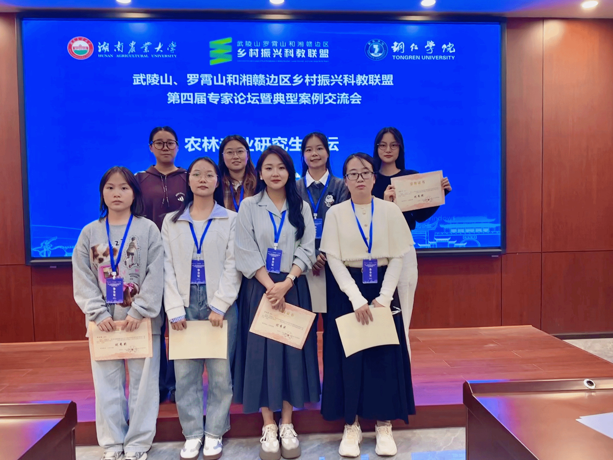2025年10月18日,由武陵山、罗霄山和湘赣边区乡村振兴科教联盟、湖南农业大学主办,我校承办的武陵山、罗霄山和湘赣边区乡村振兴科教联盟第四届专家论坛暨典型案例交流会在贵州铜仁举办。我院农业(农村发展)专业王芷清、杨佳榆、孔祥莹、张奥、江梦樱、徐晶晶、苏嘉华、冉俊容等8名研究生,参加本次会议的农林专业研究生论坛并作专题报告,以专业研究助力乡村振兴学术交流。