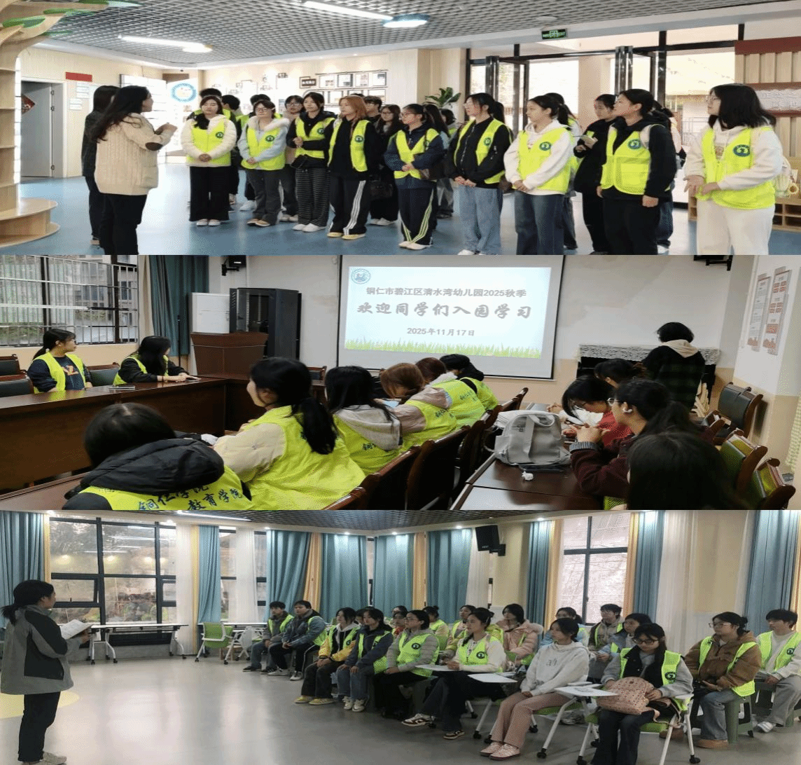 为深化学生专业认知,锤炼实践教学能力,近期,教育学院学前教育专业开展了为期五天的专业见习活动。本次活动覆盖了 2023级和2024级共四个班级198名学生,分别在铜仁学院附属幼儿园、铜仁市第二十四幼儿园、铜仁市碧江区桐达果岭幼儿园等7所合作幼儿园有序开展教育见习。