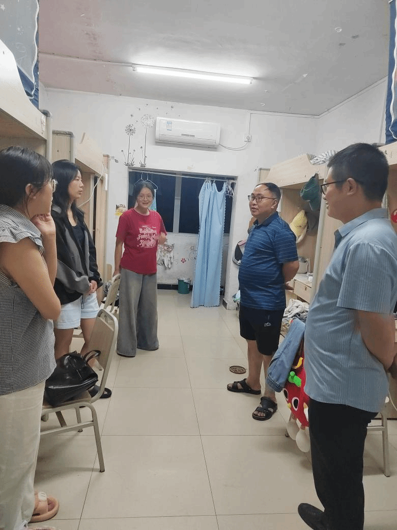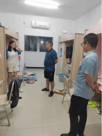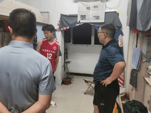 张江林书记、赖全院长二人先后来到各个留校学生寝室,逐间检查用电规范、消防设施与阳台杂物,现场整改插排串联、通道堆放等隐患。他们叮嘱留校同学,假期校园人流减少,要互相关照,提醒同学们注意用电安全、人身安全和网络安全,外出断电、关好门窗,合理安排作息,让远方的父母安心。一句句贴心的问候,让身处异乡的学子倍感温暖。同时,他们鼓励备战考研的学子们利用假期时间,做好规划,劳逸结合,在专注学业的同时也要加强体育锻炼,提升综合素质。