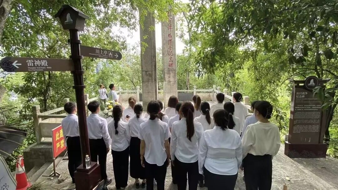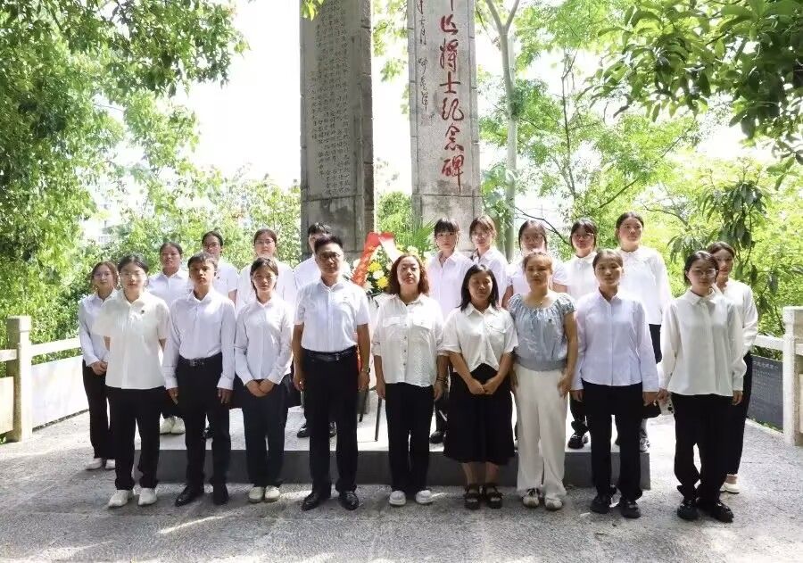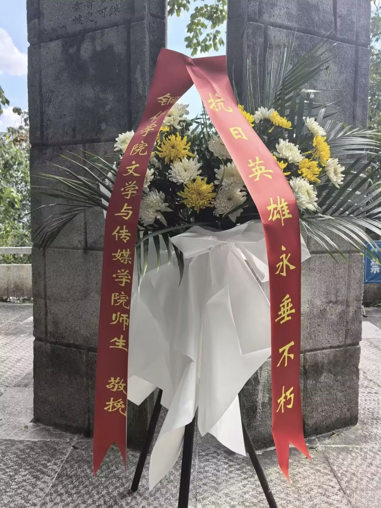 在纪念中国人民抗日战争暨世界反法西斯战争胜利80周年的重要历史时刻,为深切缅怀抗日先烈的丰功伟绩,弘扬伟大抗战精神,传承红色基因,激发广大师生的爱国热情与时代担当,9月3日下午,铜仁学院文学与传媒学院党委副书记杨雪和教师党员、学生党员、征帆省级班主任工作室成员及秘书协会会员代表共20余人,来到位于碧江城区东山上的抗日阵亡将士纪念碑前,举行庄重的敬献花篮仪式。仪式由文学与传媒学院教工第一党支部书记、征帆省级班主任工作室负责人郭征帆主持。