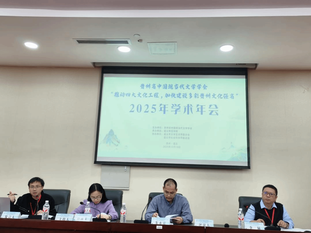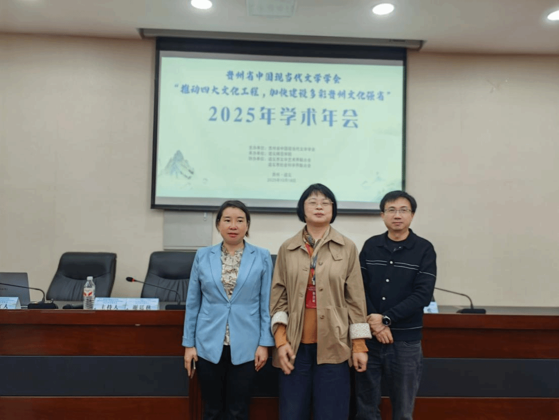 10月17日至19日,贵州省中国现当代文学学会2025年学术年会在遵义师范学院召开。本次年会以“推动四大文化工程,加快建设多彩贵州文化强省”为主题,由贵州省中国现当代文学学会主办、遵义师范学院承办,遵义市文联、遵义市社科联联合协办,旨在立足贵州文化发展实际,探讨中国现当代文学及区域文学研究的时代价值,为“多彩贵州文化强省”建设注入学术动能。我院教师庄鸿文、王棋君、唐竹英受邀参会并作专题发言。