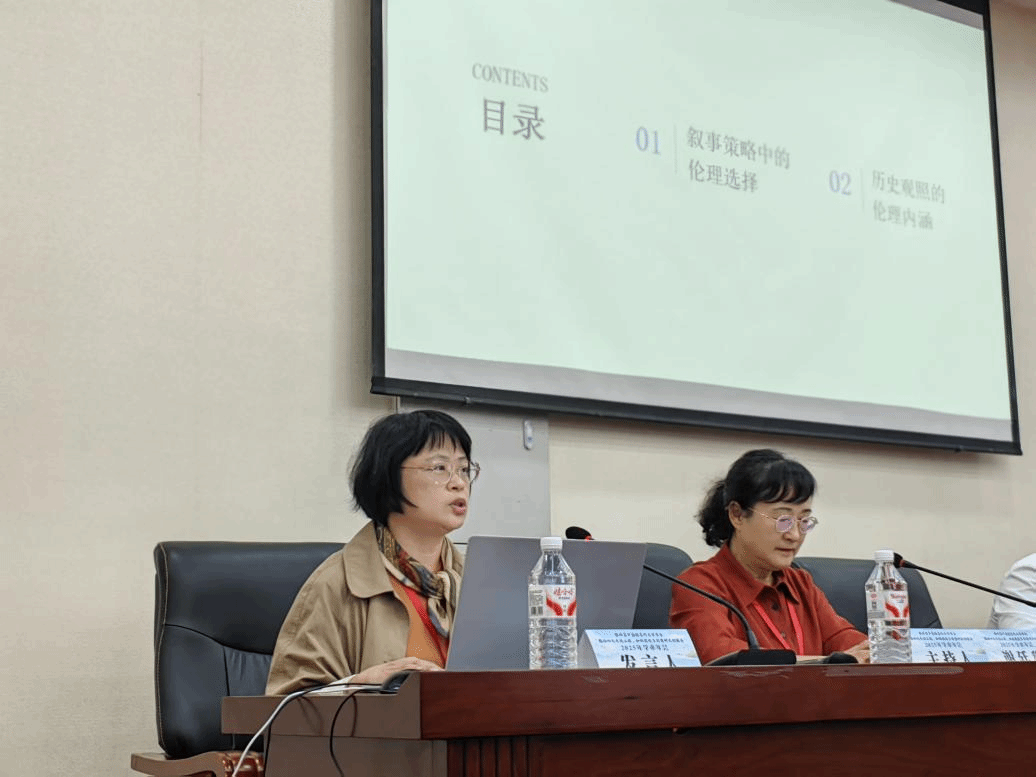 我院教师在研讨专场中围绕贵州作家创作与区域文学发展等议题分享研究成果,展现了我院在现当代文学研究领域的学术积累。庄鸿文老师以《虚实相生的“地方志”:冉正万贵阳书写的叙事伦理与历史观照》为题,聚焦贵州作家冉正万的“贵阳系列”小说。她指出,该系列作品标志着冉正万从传统乡土文学创作向城市书写的转型,通过“虚实交织”的叙事手法构建了独特的“贵阳叙事”品牌,为理解当代贵州城市文学的发展提供了新视角。王棋君的发言《如何批判:欧阳黔森城市叙事的指向与态度》,深入分析了欧阳黔森在城市叙事中体现的精英意识与社会责任感。他提出,城市叙事作为乡土文学的重要补充,不仅丰富了中国现代化进程的文学表达,更通过批判性视角回应了社会转型期的现实问题,引发与会专家对“文学介入现实”议题的热烈讨论。唐竹英则以《以宏观视角观照欧阳黔森作品中的贵州气象》为题,从地缘文化与文学创作的关系切入,全面剖析欧阳黔森作品中“贵州气象”的内涵——既包含对贵州自然山水、民俗风情的诗意书写,也蕴含对地域精神与时代发展的深刻思考,揭示了其创作的文学价值与社会意义。三位教师的发言紧扣年会主题,观点鲜明、论证严谨,得到了与会专家的高度认可,为贵州现当代文学研究贡献了我院智慧。