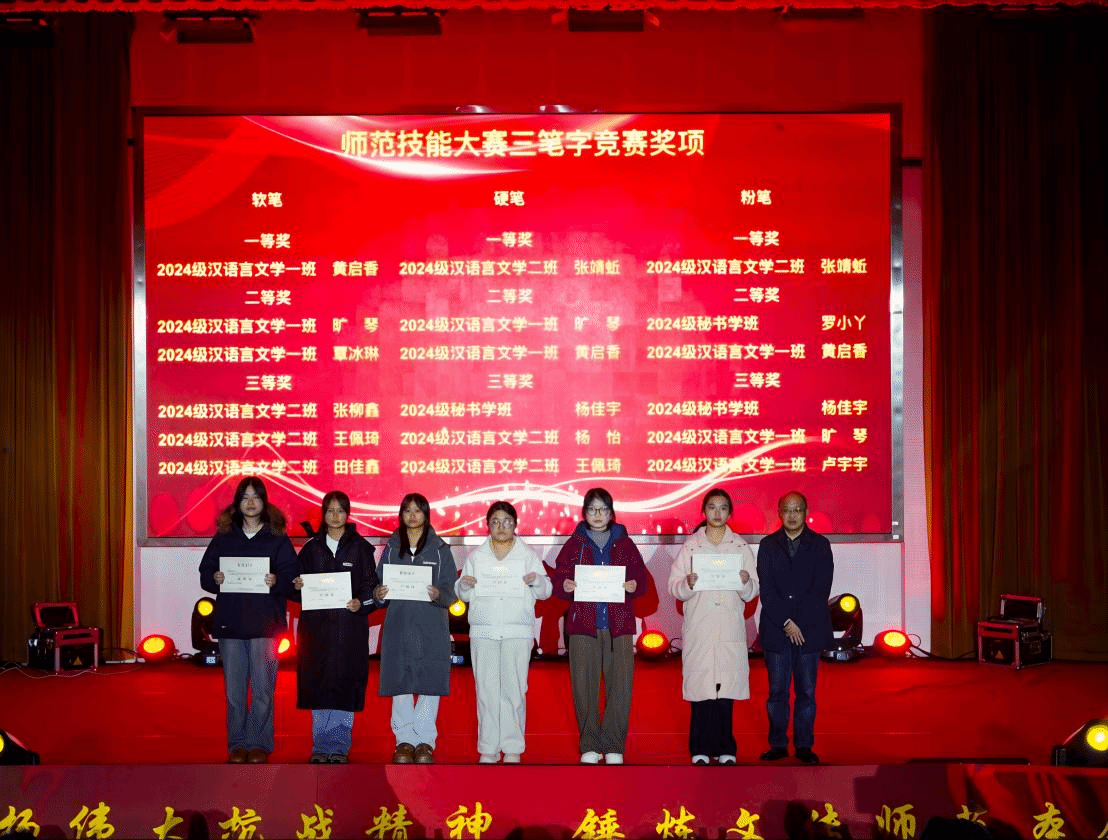 本届大赛于10月下旬启动,11月底结束,历时近一个月。大赛以“弘扬伟大抗战精神,锤炼文传师范本领”为主题,涵盖“声动山河颂英魂”汉语诗歌朗诵竞赛、“长征精神育新师”课堂教学技能竞赛、“文写抗战峥嵘史”写作技能竞赛、“墨书抗战英雄志”三笔字书写竞赛四项赛事,吸引500余名学生踊跃参与,获奖人数(含团队)近100人次。